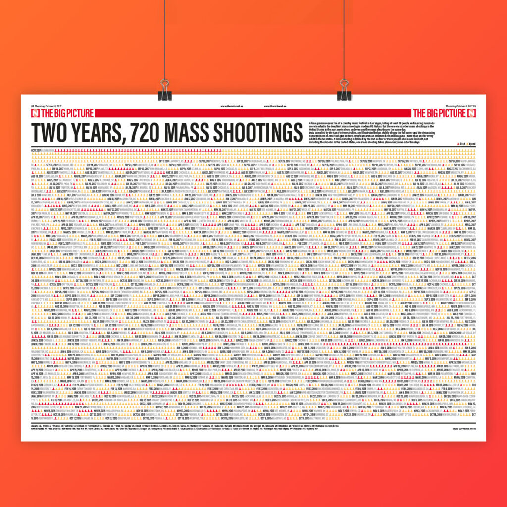 Awarded with a European Newspaper Award in 2018 for an infographic about mass shooting in the US