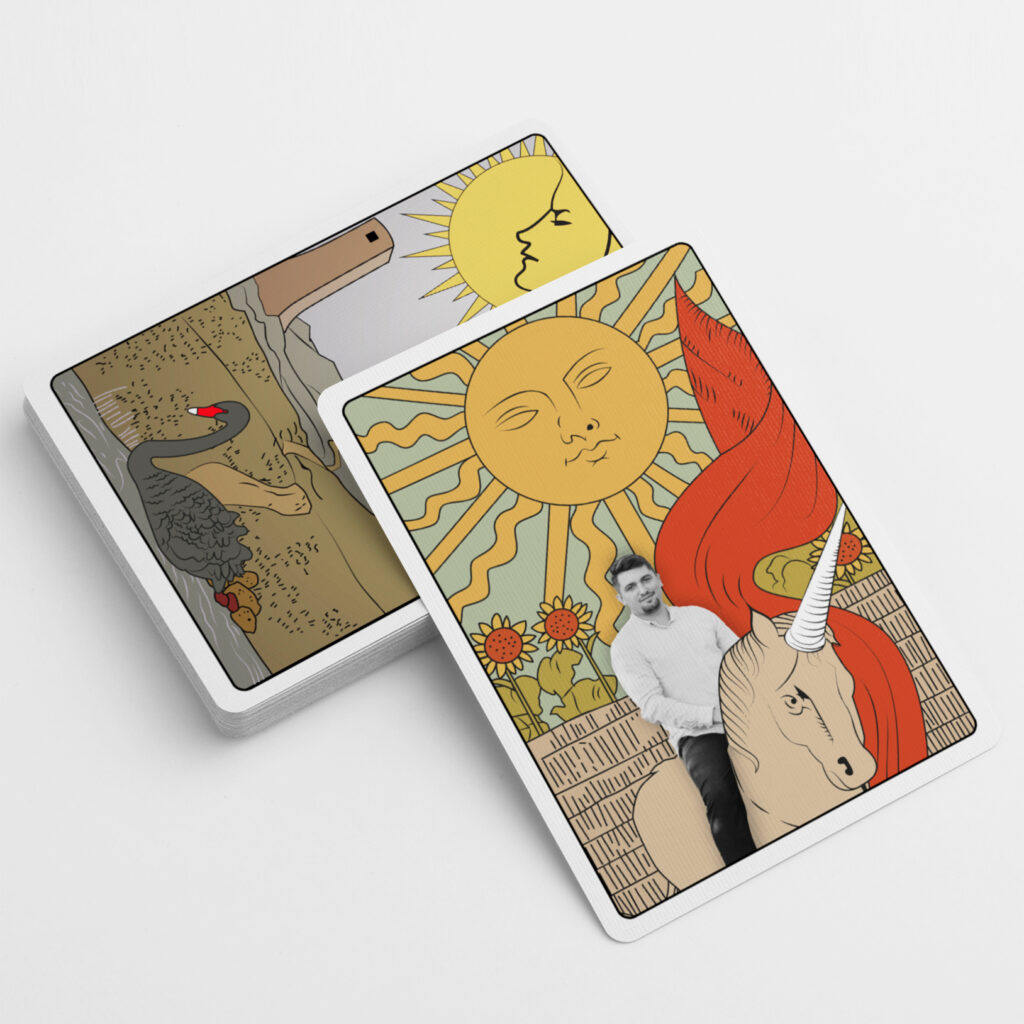If years ago I hadn’t done another illustration this one might have been very similar to the other one. When I read it I consider it a challenge to find a different approach. This time was mixing it with tarot as it was talking about how they can predict the future.